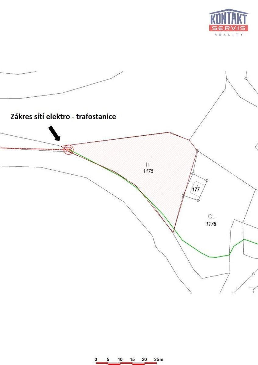 kanalizace. V cípu parcely je trafostanice ( elektřina ).