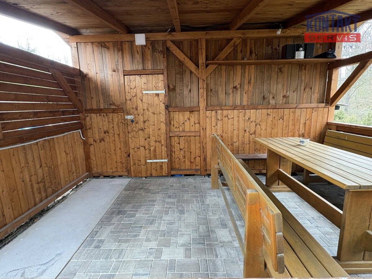Součástí nemovitosti je také velká pergola (28 m2) s kůlnou = ideální