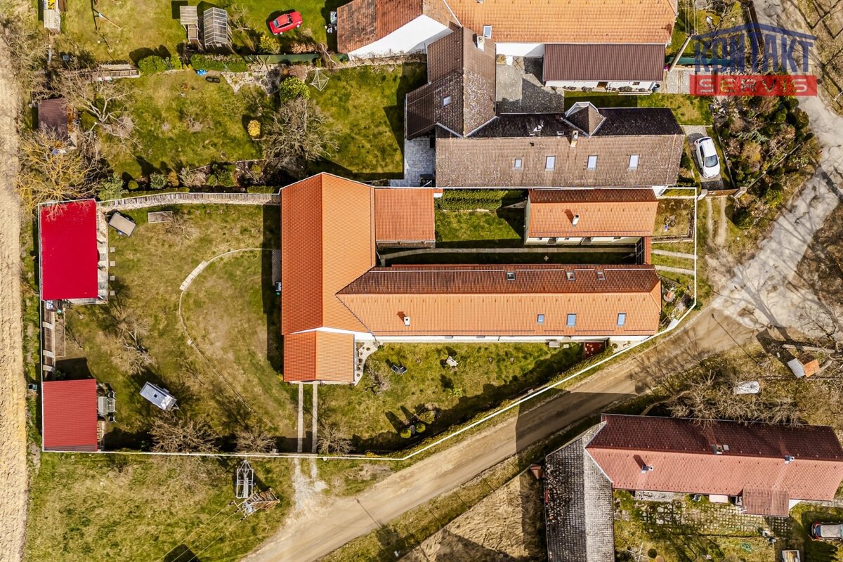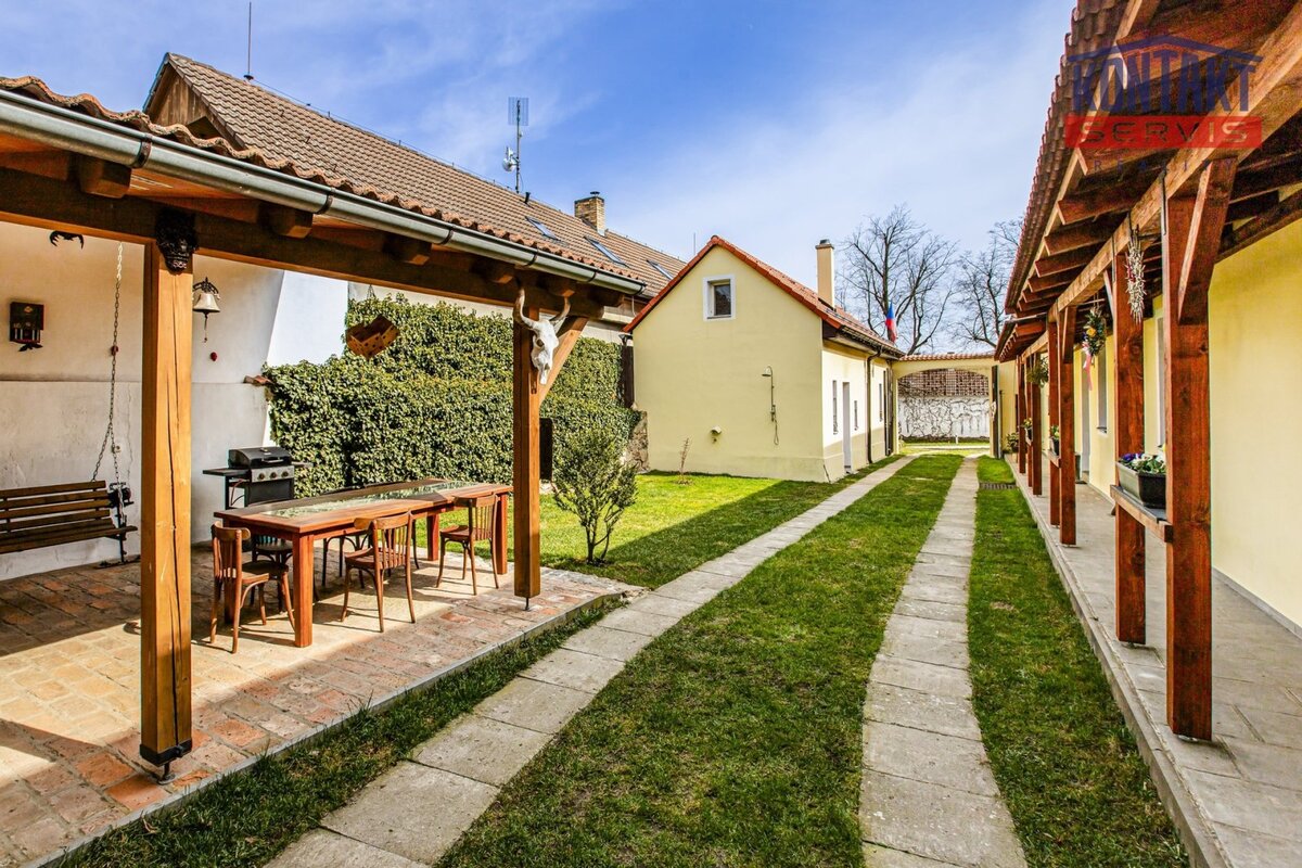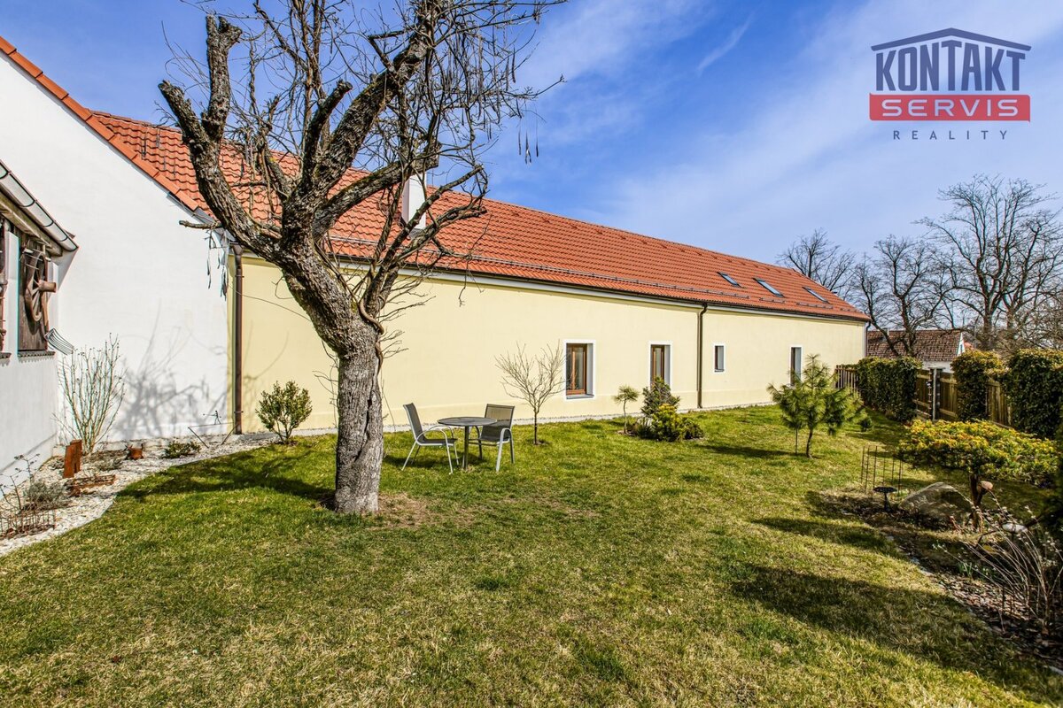 Nabízíme ke koupi kompletně rekonstruovanou vesnickou usedlost v obci Dunajovice, která se nachází necelých 6 km od lázeňského města Třeboň a 20 minut jízdy od jihočeské metropole. Hlavním obytným prostorem je samostatná jednotka o dispozici 5 + kk, přičemž v přízemí se nachází velký obývací pokoj spojený s kuchyní, samostatná ložnice a prostorná koupelna. V podkroví jsou pak tři pokoje a druhá koupelna se sprchovým koutem a toaletou. V hlavní budově na obytnou část navazují další prostory, které lze buď využít jako technické zázemí domu nebo je zde možno vybudovat další bytové jednotky (veškeré přípravy rozvodů jsou provedeny). V uzavřeném dvoře se nachází krásná pergola a samostatně stojící vejměnek s navazující kotelnou. Půdorys stavení uzavírá prostorná a průjezdná stodola. Za domem je k využití rozlehlá udržovaná zahrada s vedlejšími stavbami (krytá parkovací stání pro tři auta, kolna, přístřešek na dřevo apod.). Dům je napojen na obecní vodovod a kanalizaci, k dispozici je i vlastní studna. Zavedena je také elektřina 230/400 V. Vytápění je zajištěno vlastním kotlem na dřevoplyn s rozvodem do podlah nebo radiátorů. Celková výměra pozemků činí 1 633 m2. Tato výjimečná nabídka je vhodná pro ty, kteří touží po velkém historickém stavení v novém kabátě. Podrobnosti k zakázce a osobní prohlídku Vám rádi zprostředkujeme.