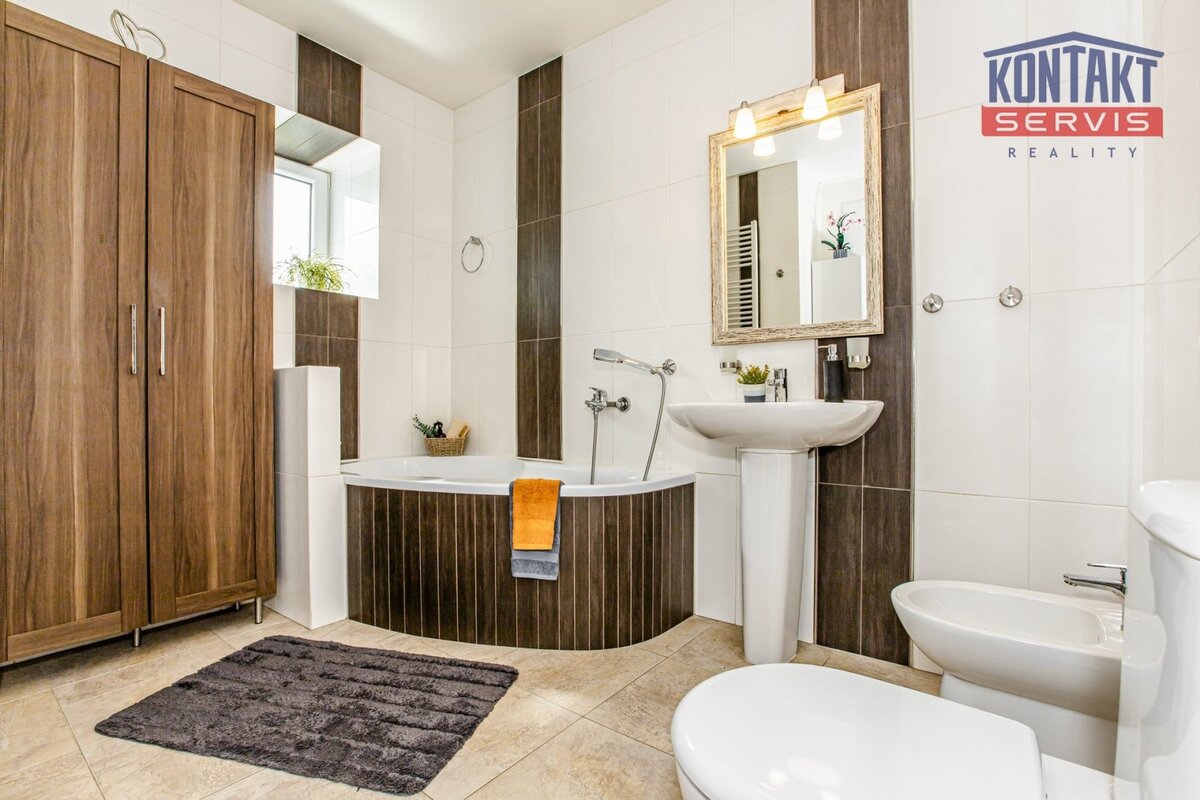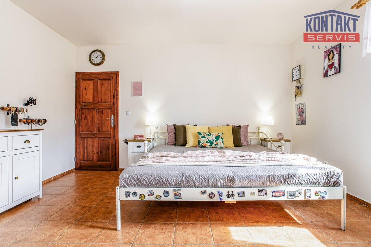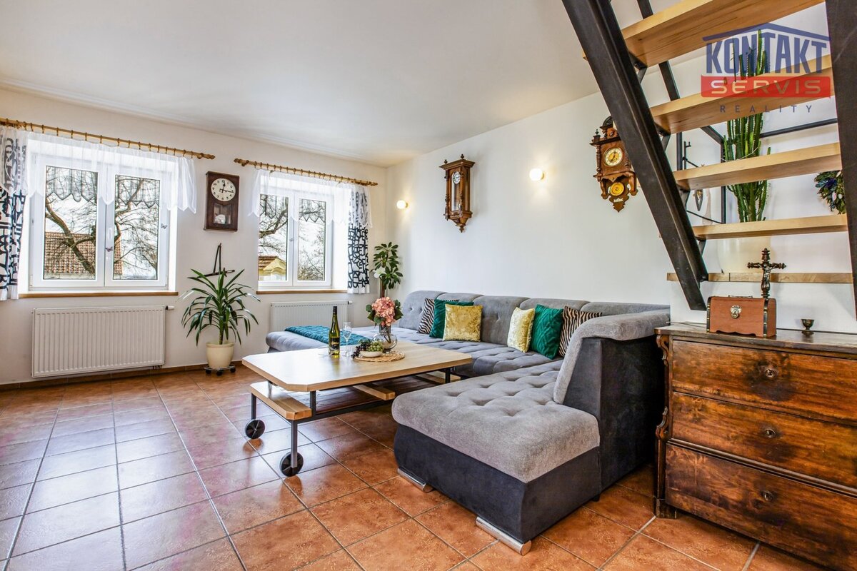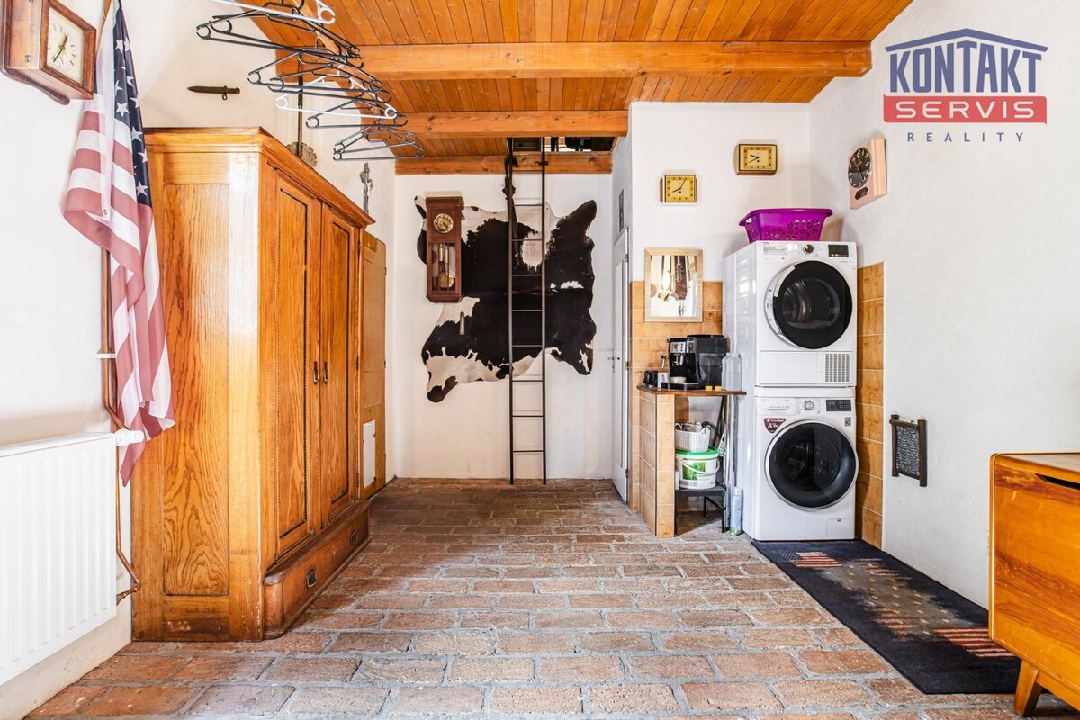 Nabízíme ke koupi kompletně rekonstruovanou vesnickou usedlost v obci Dunajovice, která se nachází necelých 6 km od lázeňského města Třeboň a 20 minut jízdy od jihočeské metropole. Hlavním obytným prostorem je samostatná jednotka o dispozici 5 + kk, přičemž v přízemí se nachází velký obývací pokoj spojený s kuchyní, samostatná ložnice a prostorná koupelna. V podkroví jsou pak tři pokoje a druhá koupelna se sprchovým koutem a toaletou. V hlavní budově na obytnou část navazují další prostory, které lze buď využít jako technické zázemí domu nebo je zde možno vybudovat další bytové jednotky (veškeré přípravy rozvodů jsou provedeny). V uzavřeném dvoře se nachází krásná pergola a samostatně stojící vejměnek s navazující kotelnou. Půdorys stavení uzavírá prostorná a průjezdná stodola. Za domem je k využití rozlehlá udržovaná zahrada s vedlejšími stavbami (krytá parkovací stání pro tři auta, kolna, přístřešek na dřevo apod.). Dům je napojen na obecní vodovod a kanalizaci, k dispozici je i vlastní studna. Zavedena je také elektřina 230/400 V. Vytápění je zajištěno vlastním kotlem na dřevoplyn s rozvodem do podlah nebo radiátorů. Celková výměra pozemků činí 1 633 m2. Tato výjimečná nabídka je vhodná pro ty, kteří touží po velkém historickém stavení v novém kabátě. Podrobnosti k zakázce a osobní prohlídku Vám rádi zprostředkujeme.