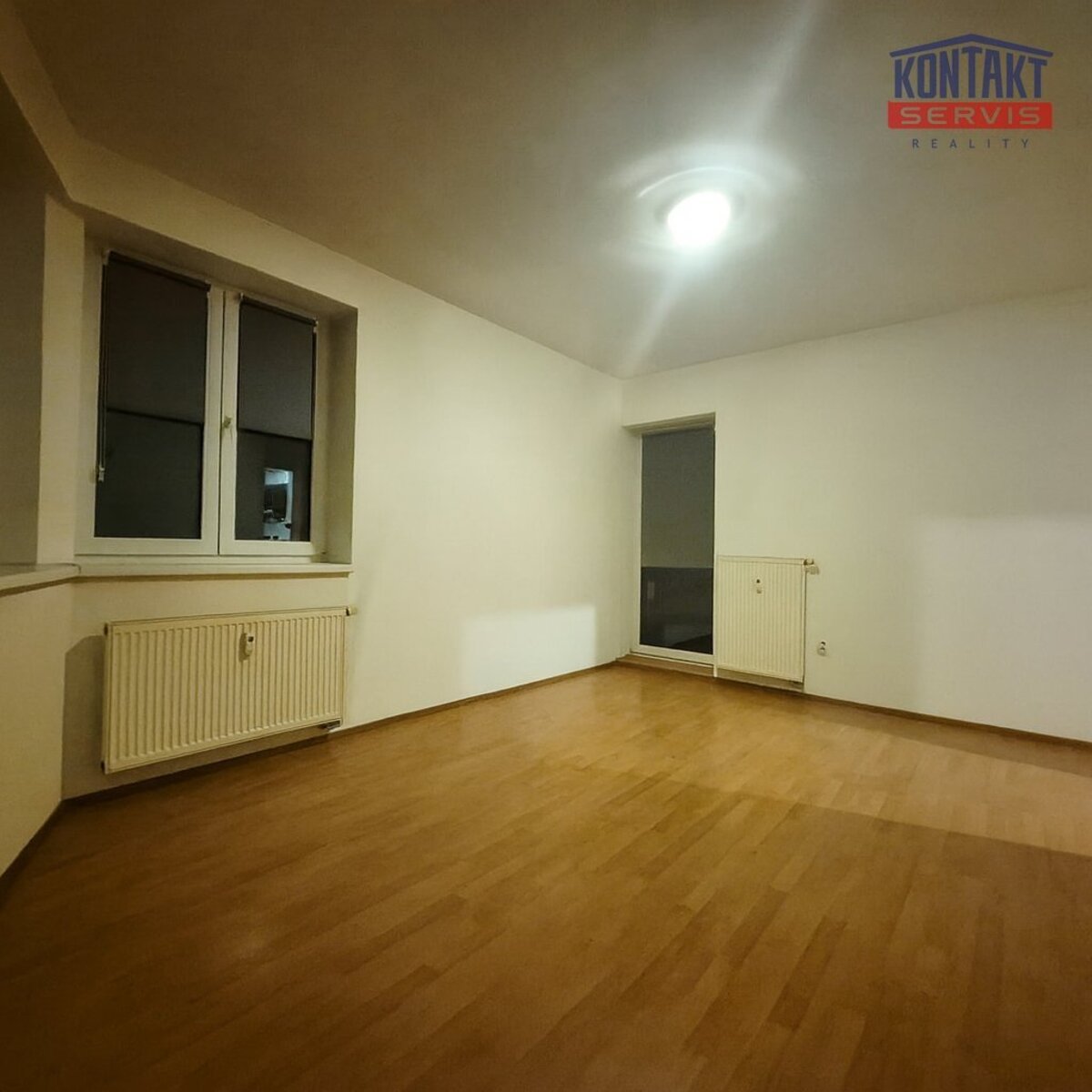 neprůchozí ložnice a obývací pokoj s kuchyňskou linkou se vstupem na