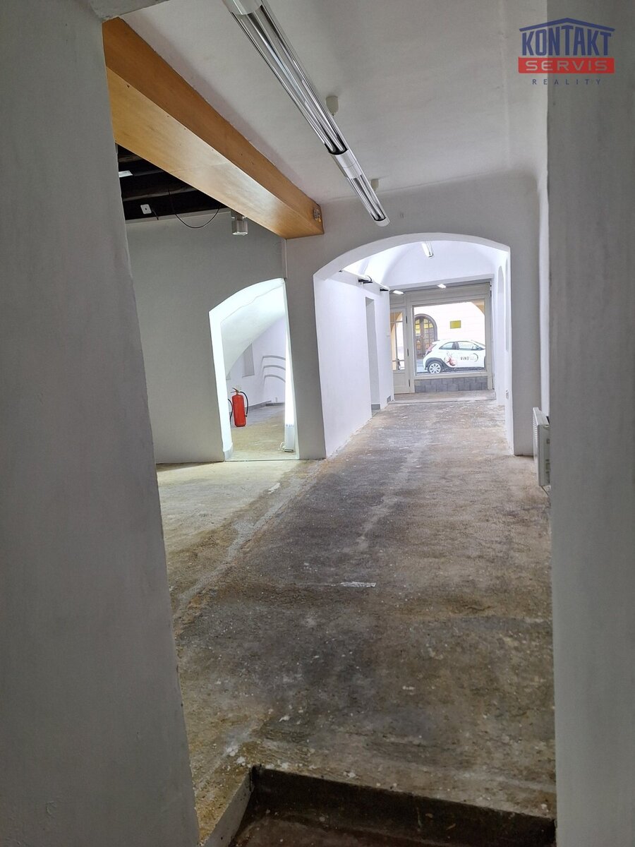 prostor má památkově chráněnou výkladní skříň). Okna směřující na